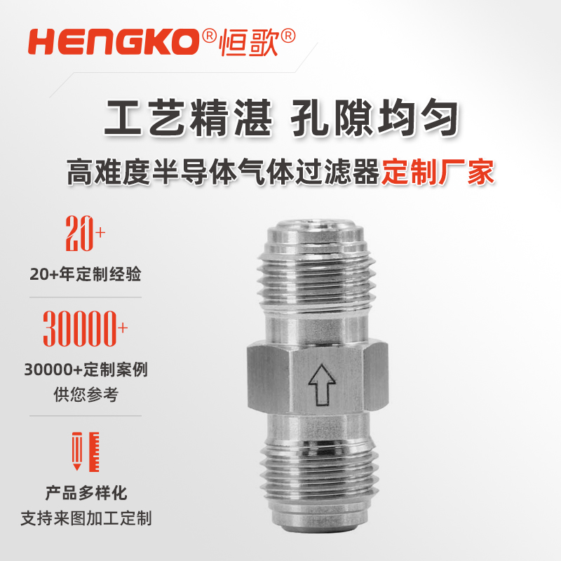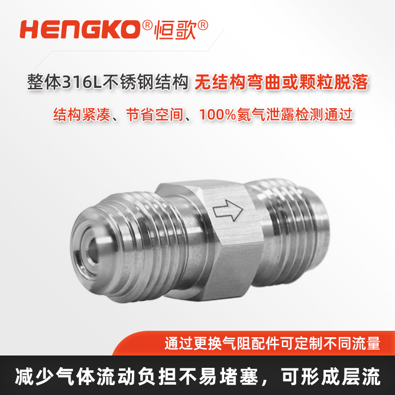 多孔金屬限流器、通過與不同規格的氣阻配件結合、安裝在壓縮氣體供應管線和氣體分配歧管中、以防止由于氣體管線破裂、閥門或壓力調節器故障、引起的意外高氣體流量。在半導體制程氣體輸送分配系統中、用于保護氣體流量穩定可靠、減少氣體流動負擔、避免氣體過載引發不良后果。結構堅因、更換便捷。